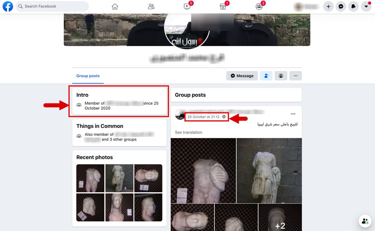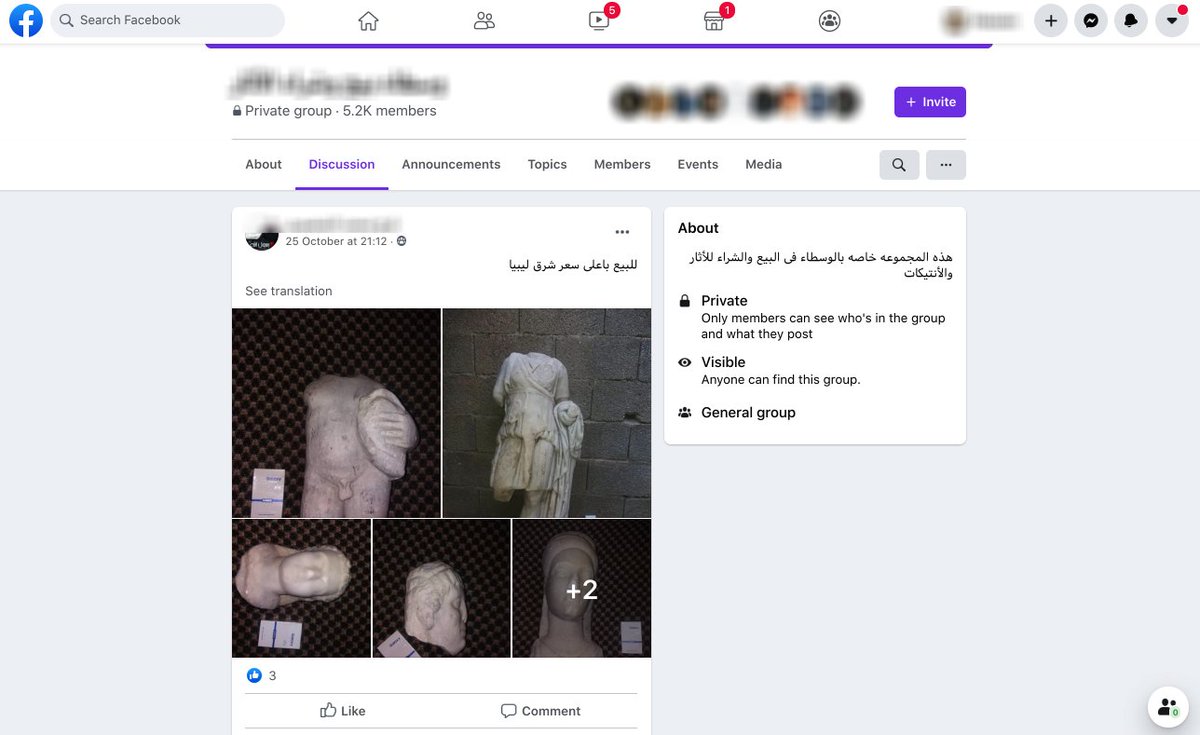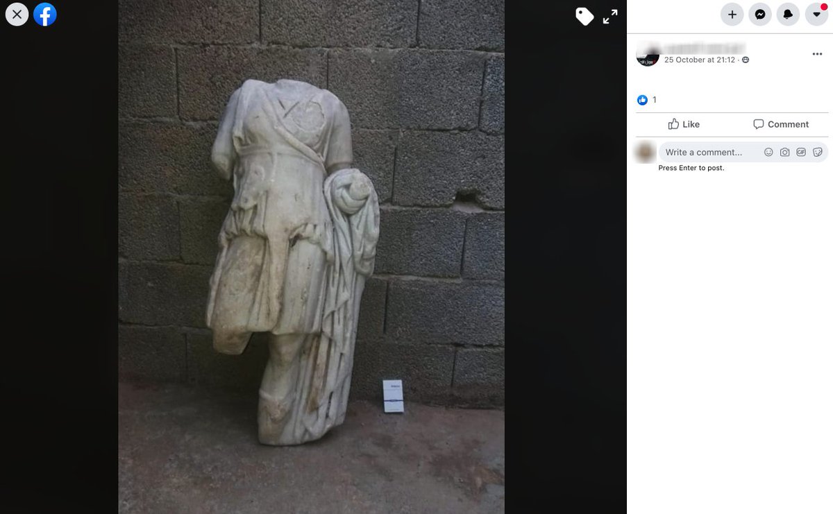 On October 25 the same user in Darnah posted the Greco-Roman statue along with several other statue pieces in another Facebook antiquities trafficking group with roughly 5,200 members.