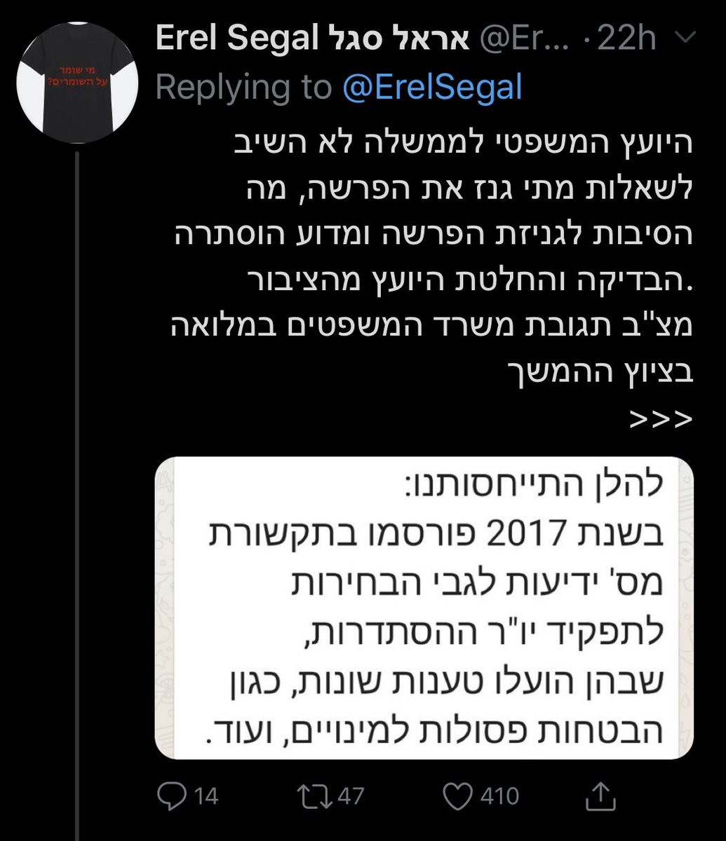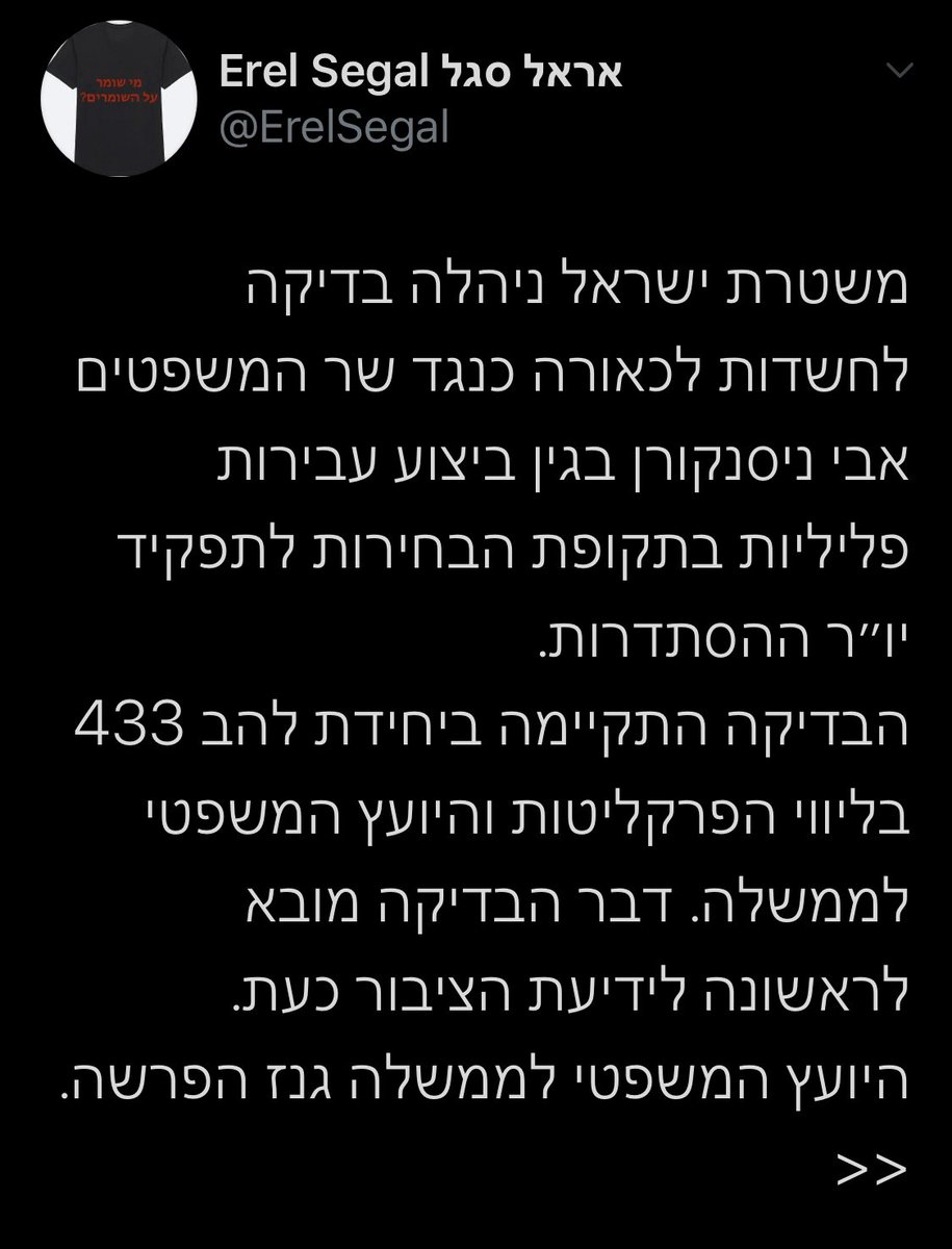 (בואו נאמל״ק לרגע את הסיפור לא סיפור הזה ונחזור לשיטה. לפני 3 שנים היו חשדות לפלילים כלפי ניסנקורן. נבדקו, לא נמצא דבר, נגנז (ואגב הובא לידיעת הציבור). עם הדאלאשמעאטה הזה הם יוצאים עכשיו למתקפה. קונספירציה ליגה ג׳. המטרה: לקעקע את האמון במערכת המשפט. השקר לא חשוב אם יהודהד כהלכה)