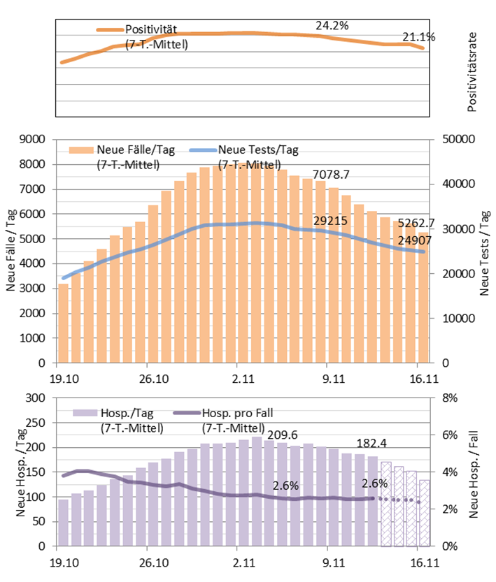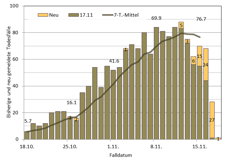 Epidemiologische Kurve der letzten 4 Wochen (bis 16.11./12.11.):