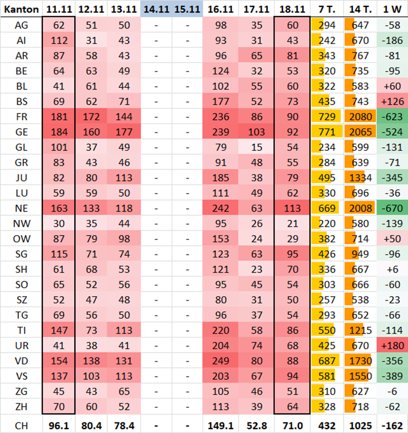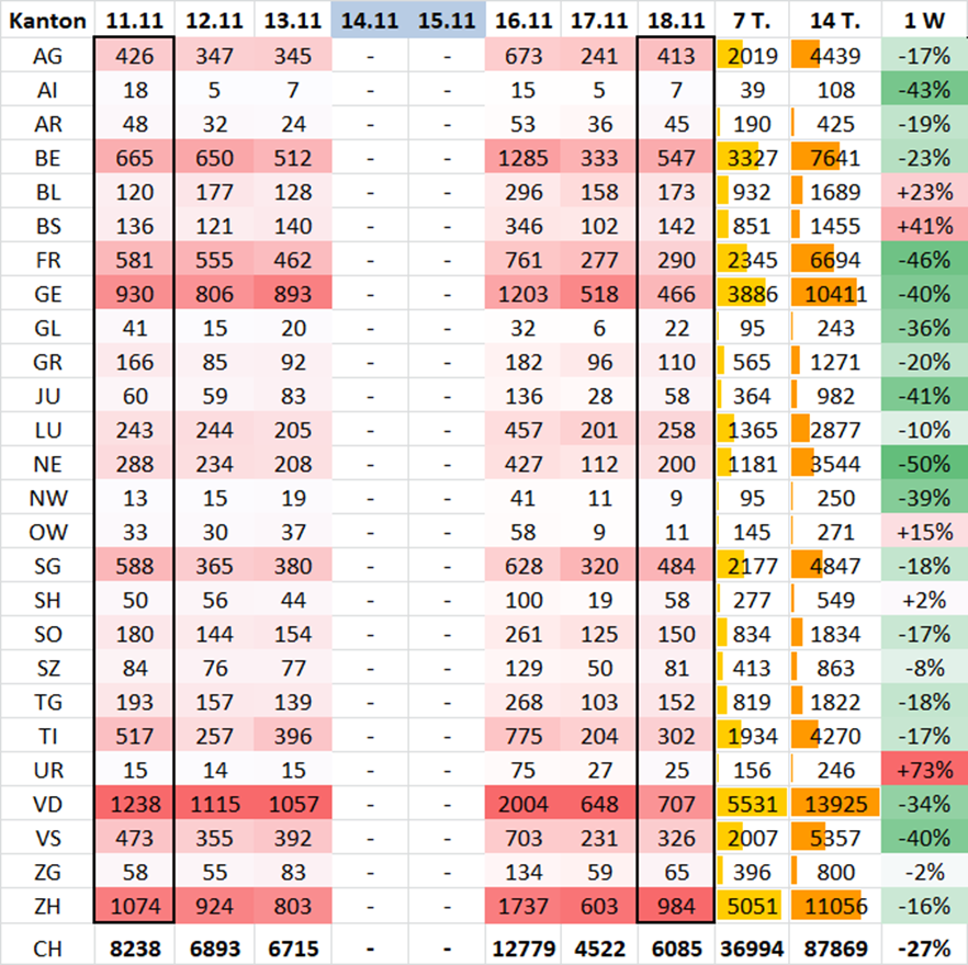 Die 17'309 neu gemeld. Fälle setzen sich zus.: