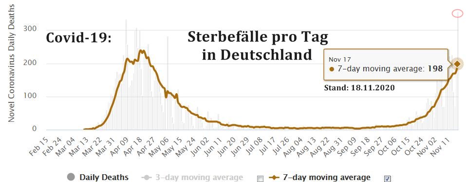 Auch bei uns kündigt sich die Gipfelung der tägl. Neuinfektionszahlen an. Endlich! Das Sterbegeschehen ist bei uns moderater als in Italien, welches eine deutlich stärker "maßnahmenkritisch-renitente" Bevölkerung hat.