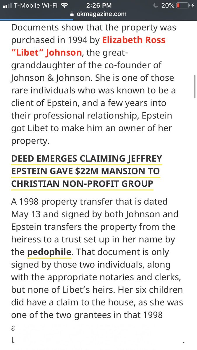 Epstein was power of attorney for Libet Johnson (Johnson & Johnson heiress)