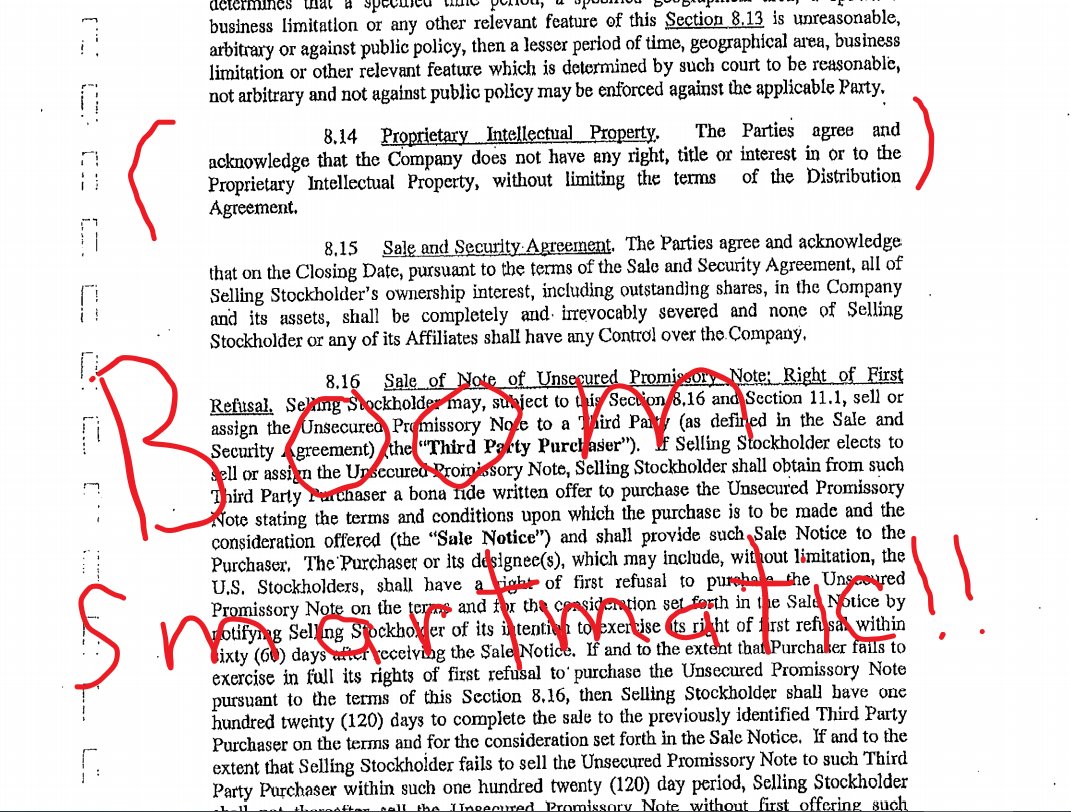 The Parties agree and acknowledge that the Company (Sequoia) does not have any right, title or interest in or to the Propriety Intellectual Property, without limiting the terms of the Distribution Agreement