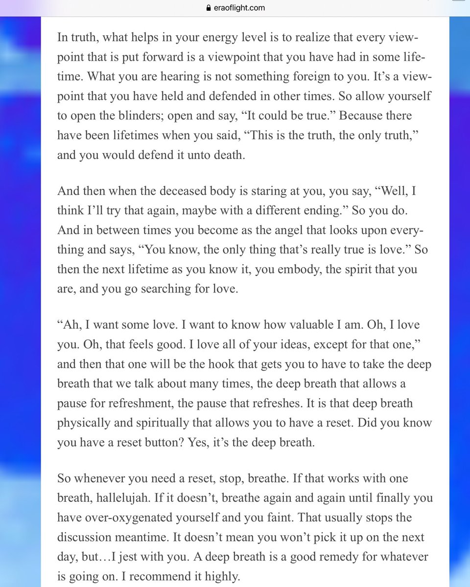 too much in the mental or in the energy level of the body—I have seen this happening as well—stop, breathe, be. Be the love that you are.” Long post- here’s a lovely bit I couldn’t resist to add here😉😇 full post eraoflight.com/2020/11/19/yes…