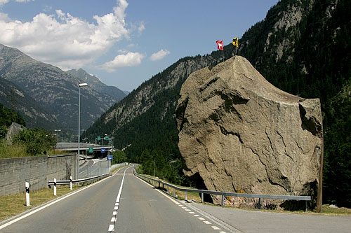 and on 1 September 1972, the stone was moved 127 metres and is now situated on the ramp of exit 40 (Göschenen) of the motorway, at the entrance of Gotthard Road Tunnel.