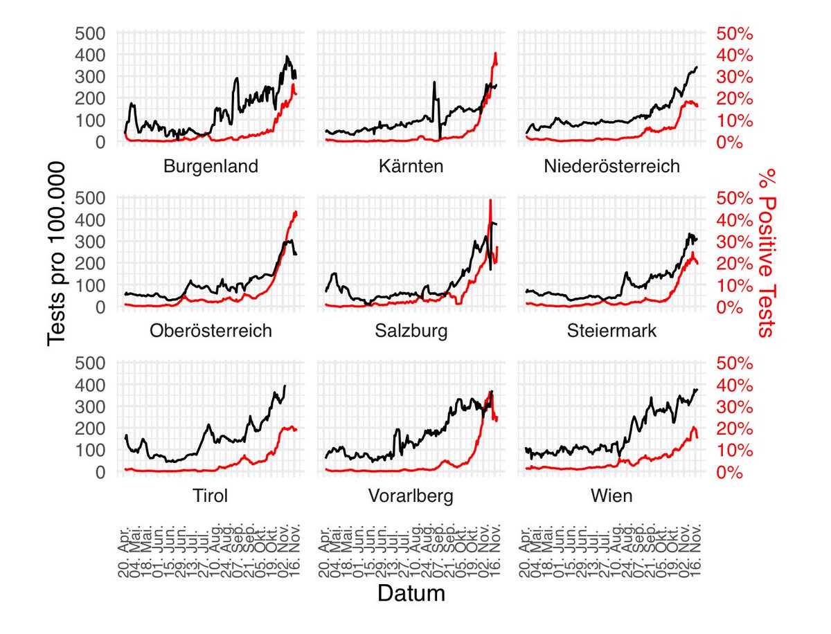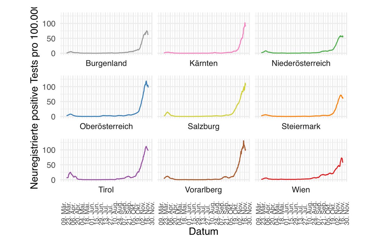 in Kärnten von gestern 391 auf heute 1007 gestiegen und in Niederösterreich von 1446 gestern auf 796 heute gesunken. Bei dermaßen großen Änderungen liegt (wieder einmal) der Verdacht nahe, dass es da Meldeprobleme gegeben hat. Also: Blog lesen (covidanalysen.at) aber