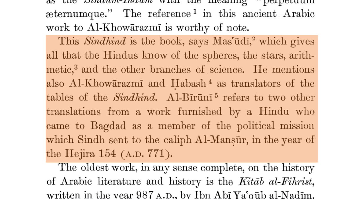 3/n @iamrana ma'am, another source "The Hindu-Arabic Numerals" by David Eugene Smith, Louis Charles Karpinski too mentions "Sindhind" being a translation from Hindu Works. (pg 9)