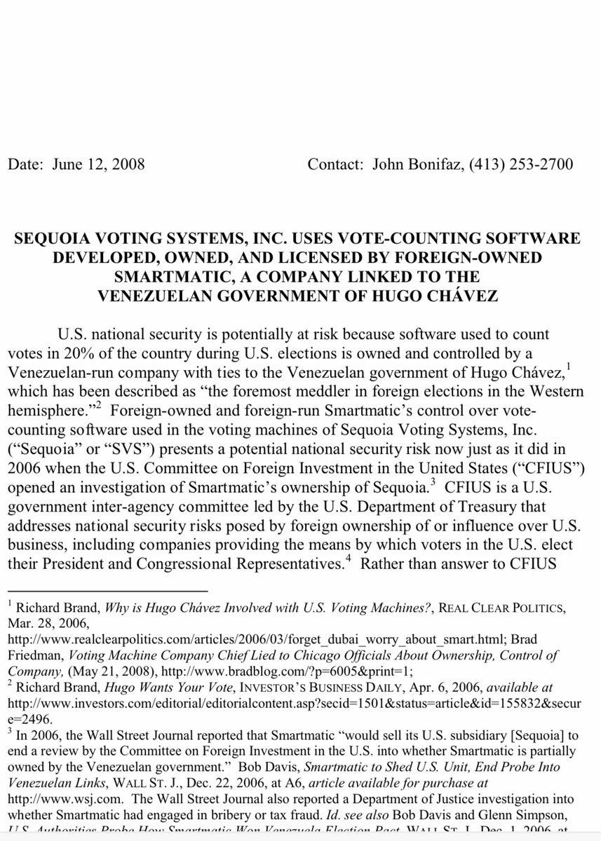 In 2008, knew that 2 years after Smartmatic Venezuela divested from Sequoia, that Smartmatic owned and maintained the software in our election machines.