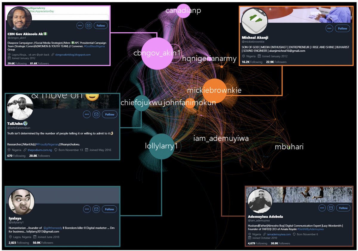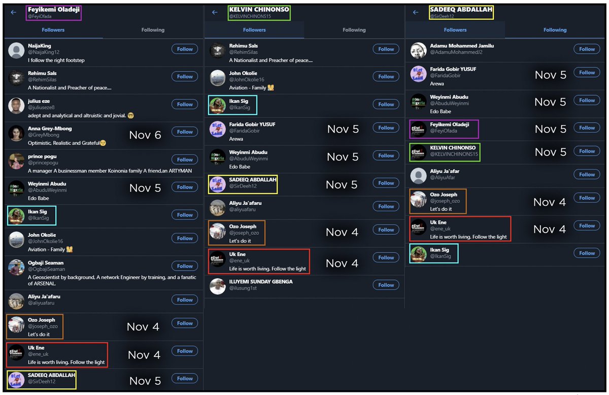 Some of the accounts in this network were created recently — even in quick succession — and helped amplify hashtags targeting the #EndSARS movement.