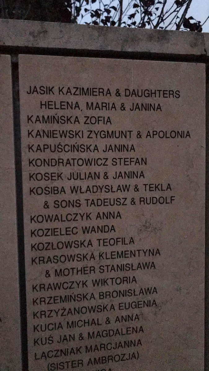 This is her name along with her mothers and two sisters in the Polish section of the Garden of the Righteous Among the Nations in Yad Vashem (thanks @OrenKessler for sending)