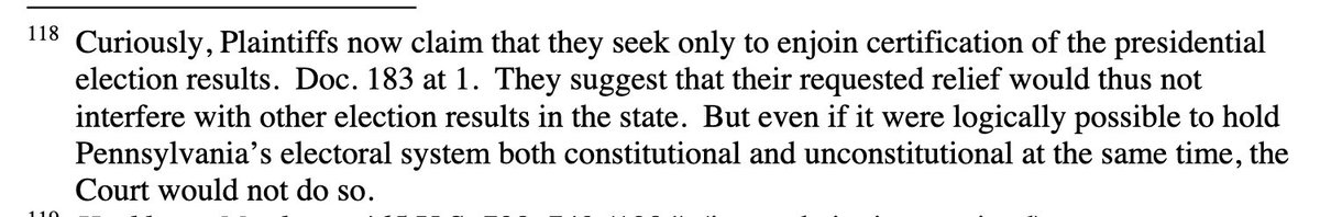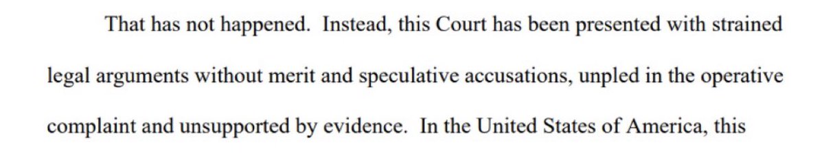 8- écrit ce que nous savons tous : la plainte de Trump contient AUCUNE preuve (unsupported by evidence). Le coup est terrible pour la stratégie judiciaire de Trump et la réputation de ses avocats dont le professionnalisme est ici remis en cause . Bien entendu, Giuliani a