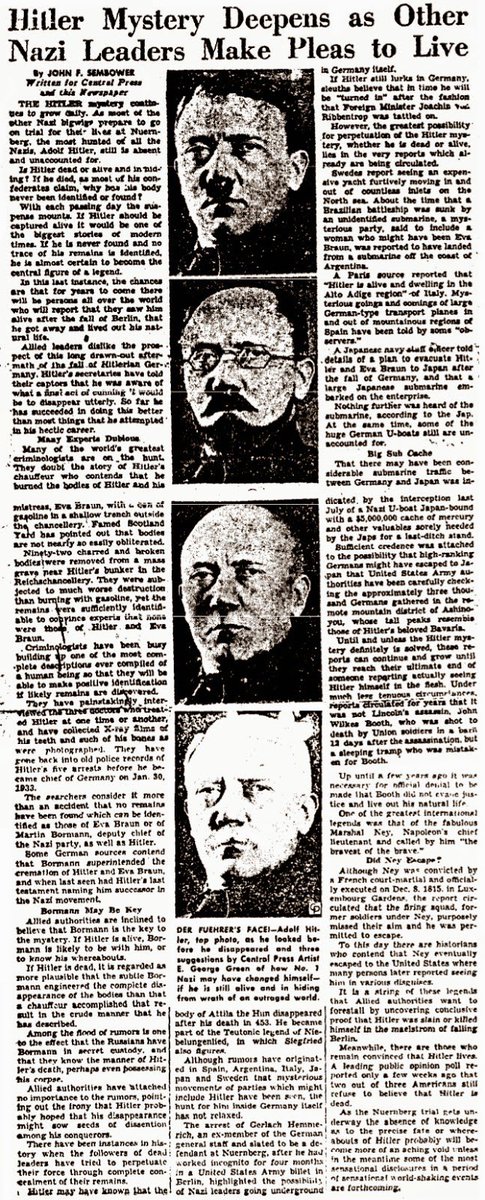 En 1945, el diario Stars and Stripes citó al entonces general Eisenhower sobre la creencia de que existía una posibilidad real de que Hitler vivía seguro y cómodo en Argentina.