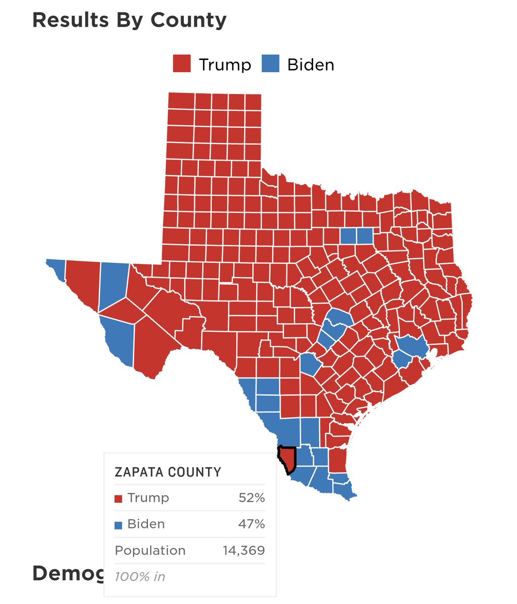 If you're going to say Biden was fine because he had a big TV budget as opposed to down-ballot Democrats, well first of all so did many downballot Democrats, and second of all, you should probably cite places where Biden didn't UNDER-perform downballot, unlike Starr County Texas.