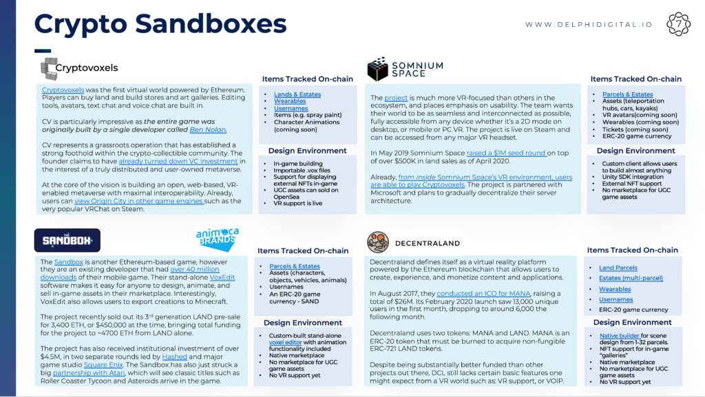 12/25 Whilst there are certainly many unique value propositions of crypto sandboxes, we still have a long way to go. Various UX frictions and scaling restraints will continue to hold these worlds back until solved.
