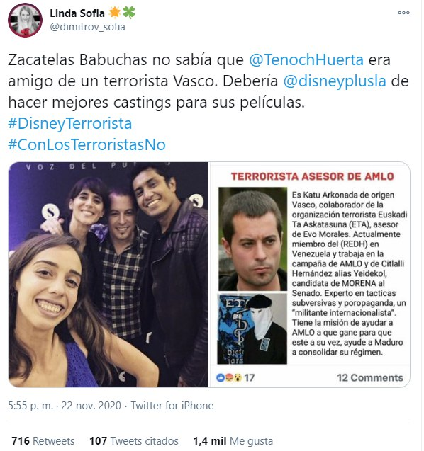 Si nos fijamos en los tuits con más RTs casi todos hacen referencia a que el actor @TenochHuerta se hizo una foto con un supuesto "terrorista", se trata de @KatuArkonada, una persona que no tiene nada que ver con ETA, y que nunca ha sido ni juzgada ni condenada por ello.