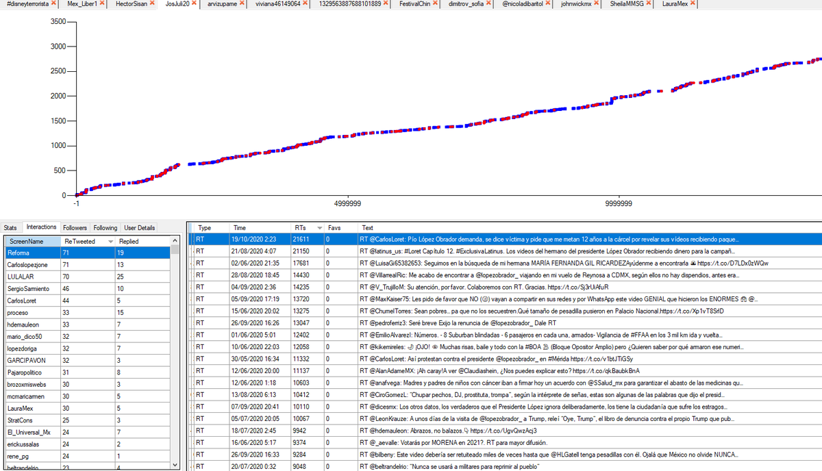 Si vemos las cuentas que más tuits pusieron con el HT, más de 25 cuentas hicieron más de 40 tuits con el HT para llevarlo a TT, y vemos que el patrón siempre es el mismo retuiteando las principales cuentas en apoyo a FRENAA y contra AMLO.