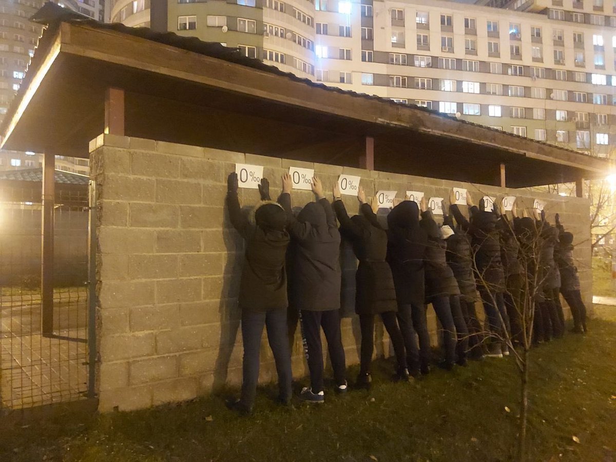 #Belarus Emergency hospital doctors are rallying in solidarity with those detained. They are holding sheets of paper reading zero ppm. Raman Bandarenka had zero alcohol in blood, despite #Lukashenko claimed he was drunk. Their pose - this is how people have to stand for hours