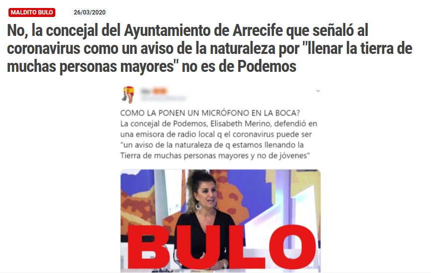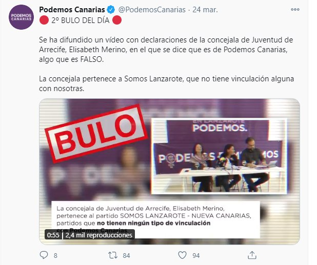 También fue desmentido por Podemos Canarias, pero es una estrategia habitual que desde los emisores de fake news repliquen y repiten el mismo bulo una y otra vez.