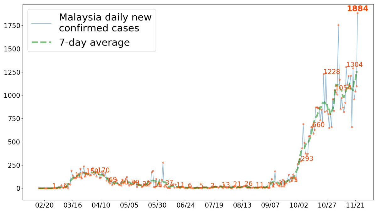 Malaysia reported new high of 1,884 cases yesterday, as this round of increase continues.
