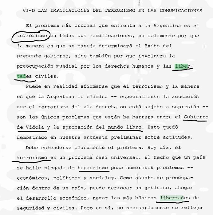 Esta batalla cultural se planteaba en los mismos términos en la Operación Cóndor, donde la empresa Burson Masteller (USA), asesoraba a la dictadura de Videla, acentuaba la importancia de apropiarse de la palabra "libertad" y acusar de "terrorismo" al rival.