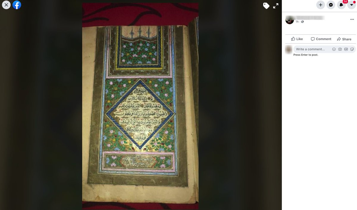 Just one hour ago a user offered an illuminated Quran for sale.