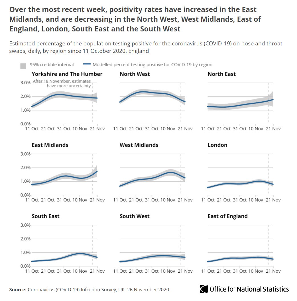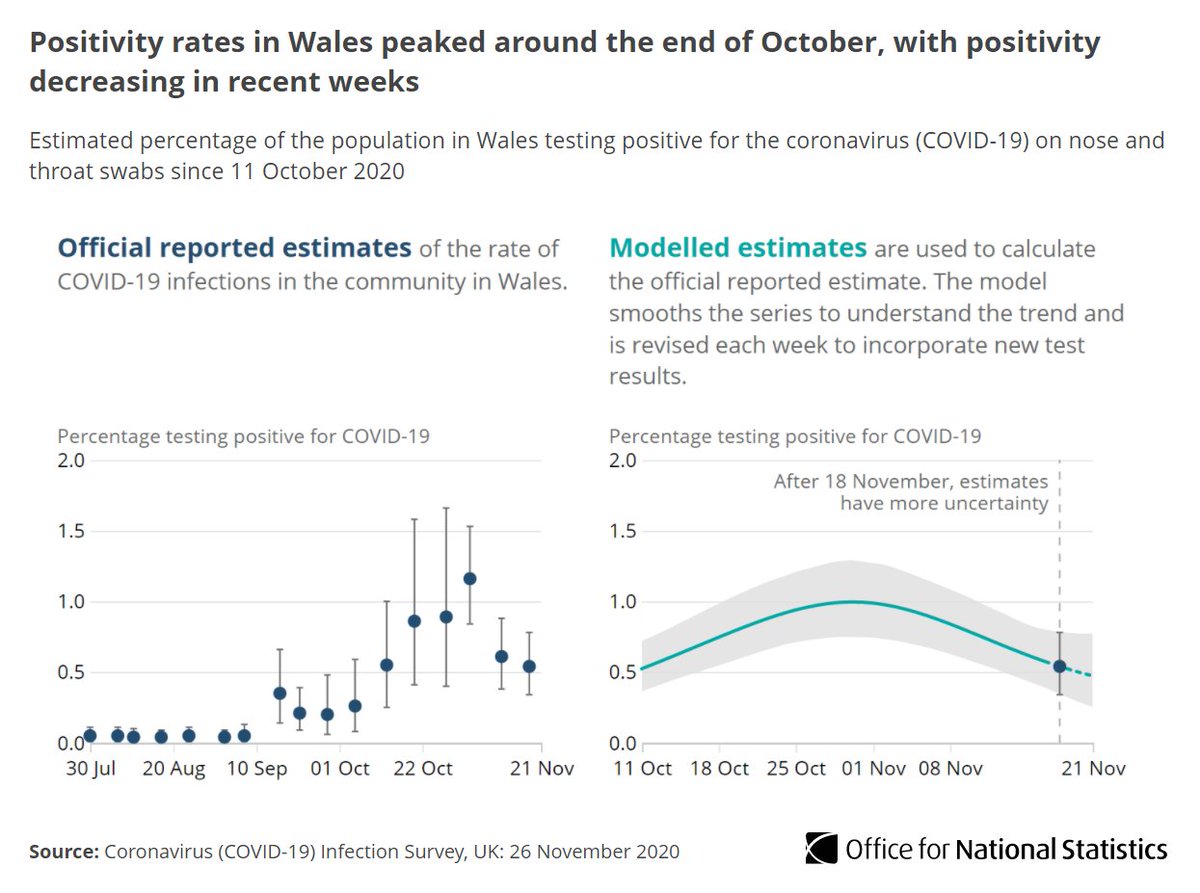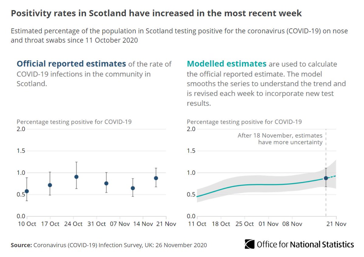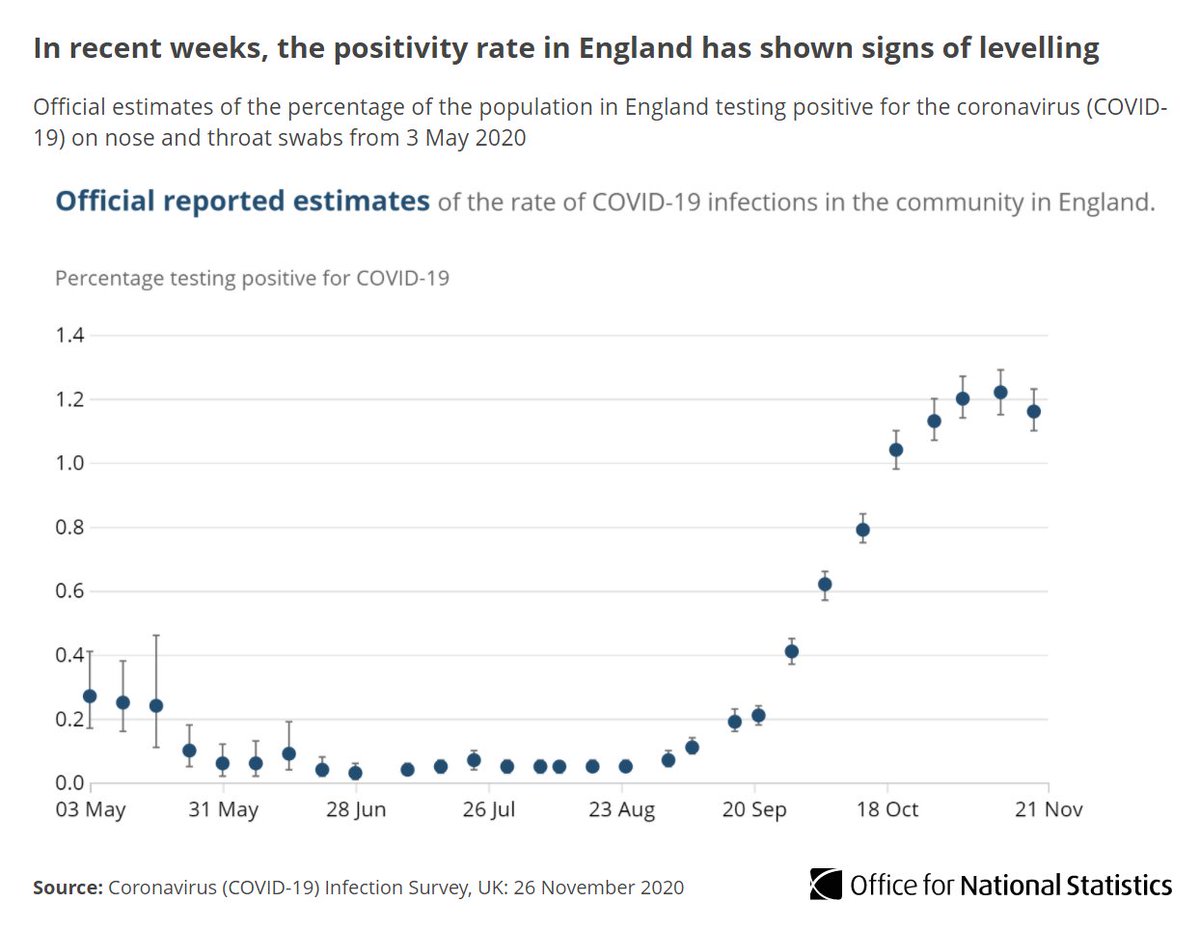 Around 1 in 85 people not in care homes, hospitals or other institutional settings would test positive from 15 to 21 November ow.ly/I6nv50CvtVD