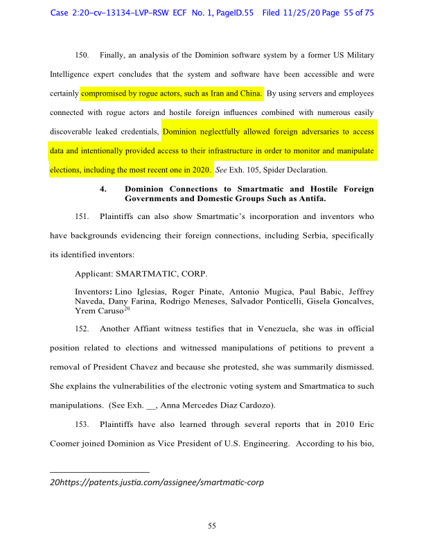 Both lawsuits state that Dominion "allowed" "rogue actors, such as Iran and China" to intervene in the election.
