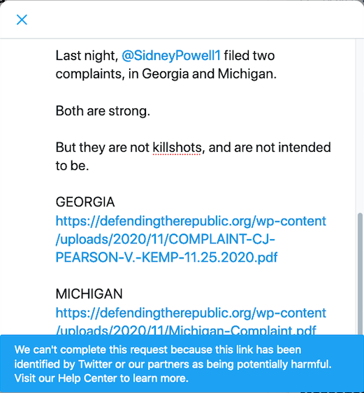 Last night, @SidneyPowell1 filed two complaints, in Georgia and Michigan.