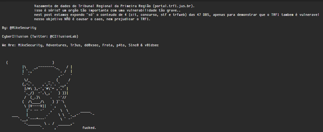 Suposto vazamento de dados do Tribunal Regional da Primeira Região (portal.trf1.jus.br) aconteceu hoje (26). +