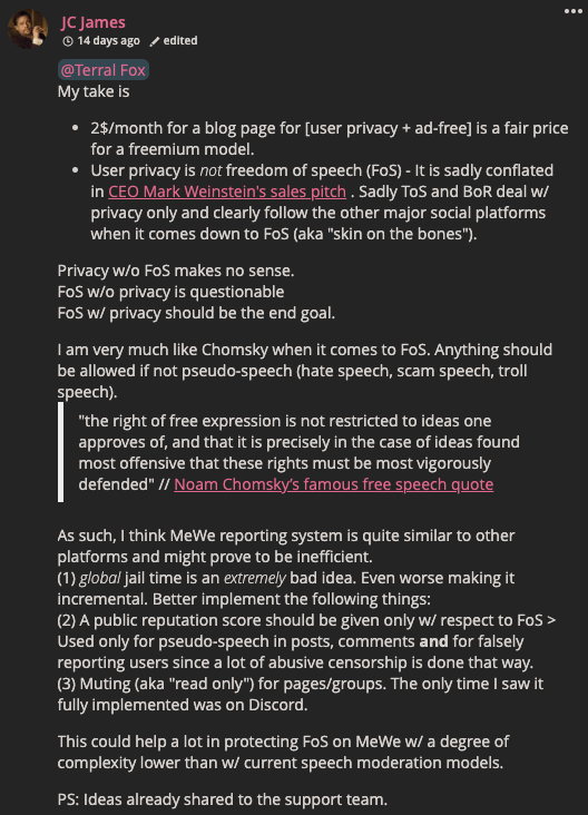 @sabhlok@markweinstein I fact MeWe is having the same ToS as all major platforms. It means the potential consequences are the same: It can censor if complaints/pressures are made (included by users or org like WHO) and as it see fit. mewe.com/terms