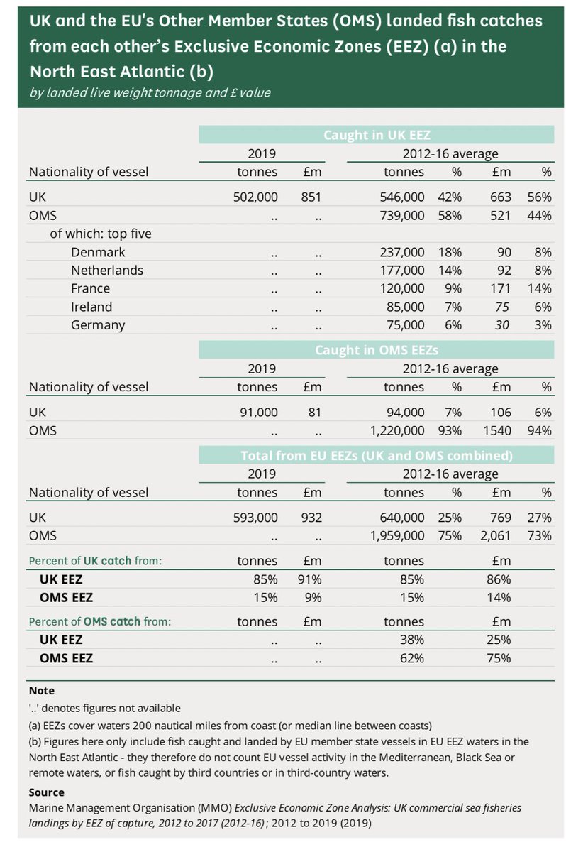 interesting Sunday reads on fish negotiations - useful context on quantum here - talking about 700k tonnes of fish worth half a billion £ a year fished by eu27 in Uk EEZ. So EU reportedly proposed restoring 18% to UK, others say UK wants 80% - argument over £300m of 🐠 0.01% GDP