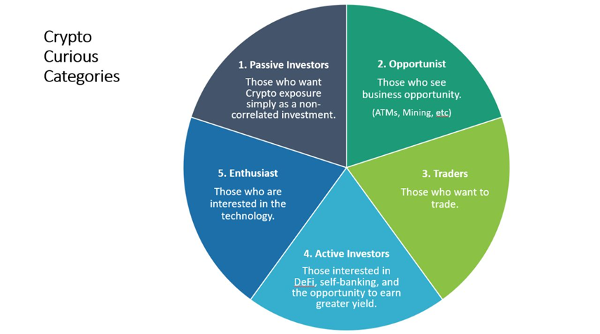 Hay muchos otros interesados en el #bitcoin: 1. Passive Investor –Descorrelación con otros activos 2. Opportunist – Oportunidades de negocio (minado, y alternativos) 3. Trader –Non stop 365/7/24 4. Active Investor –Tendencias (fintech) 5. Enthusiast –Fanáticos tecnologías(12/16)