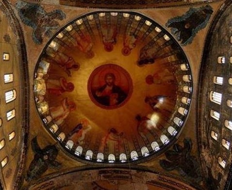 Visually, it creates an uninterrupted space for mosaics. The original dome had a gigantic mosaic of Christ Pantocrator which was covered up after the Ottoman conquest.
