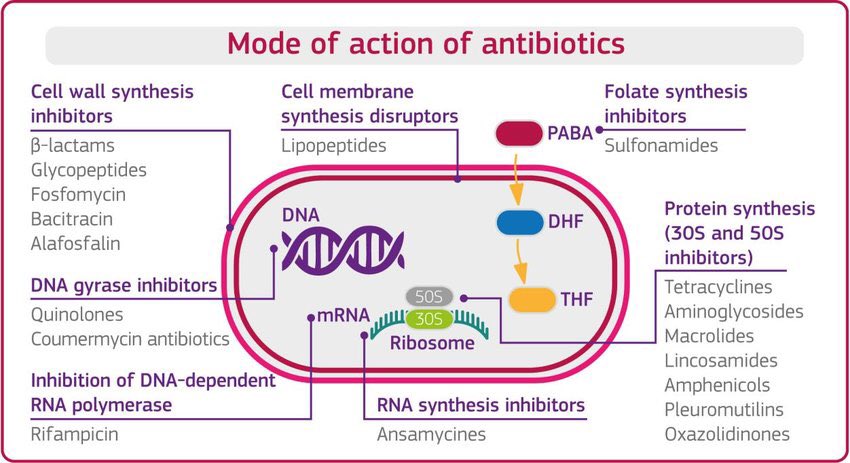 நான் ஏற்கனவே குறிப்பிட்டபடி, நோய்த்தொற்றை உண்டாக்கும் கிருமியை சரியாக அடையாளம் கண்ட பின்பே மருந்துகள் கொடுக்கப்படும். கீழ கொடுக்கப்பட்டுள்ள புகைப்படம் Antibiotic க்குகளின் வகைகள் மற்றும் அவை எந்த வழிகளில் எல்லாம் பாக்டீரியாவின் வளர்ச்சியை தடுக்கின்றது என்பதை காட்டுகின்றது (11/n)