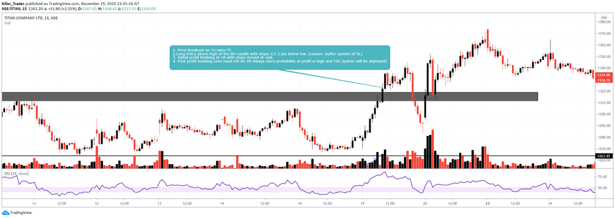 c. Current Market cycle. 5. The size of the TF and value of RSI are inversely proportional. 6. Ideal trade conditions are when RSI on 5 mins>15 mins>1hr in case of bullish trend.