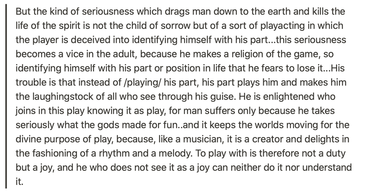 In one of my readings, Alan Watt's Become What You Are, this passage about playing your part stuck out to me:
