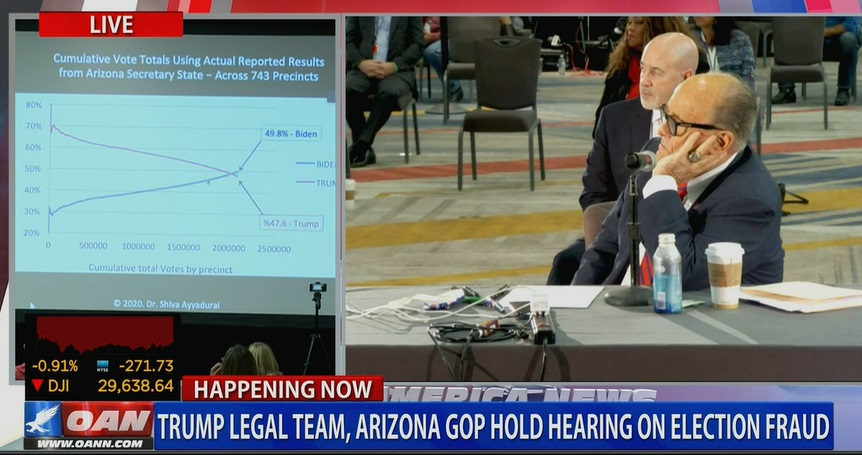 トランプ陣営のリーガル=ジェナエリス「虚偽の結果が認証されないよう介入することは州議会の義務。アリゾナの有権者が汚職によって権利を奪われないように。州議会の皆さんが最後の砦なのです」