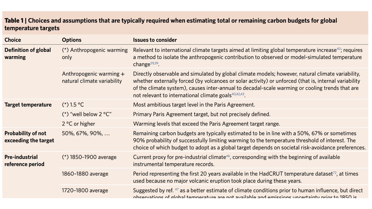 2/ First off. What is a remaining carbon budget (RCB)? Total future CO2 emissions (from fossil fuels and/or land-use) that is consistent with limiting warming to a particular target, from now until the time emissions reach net-zero. Only CO2 mind … none of them other GHGs