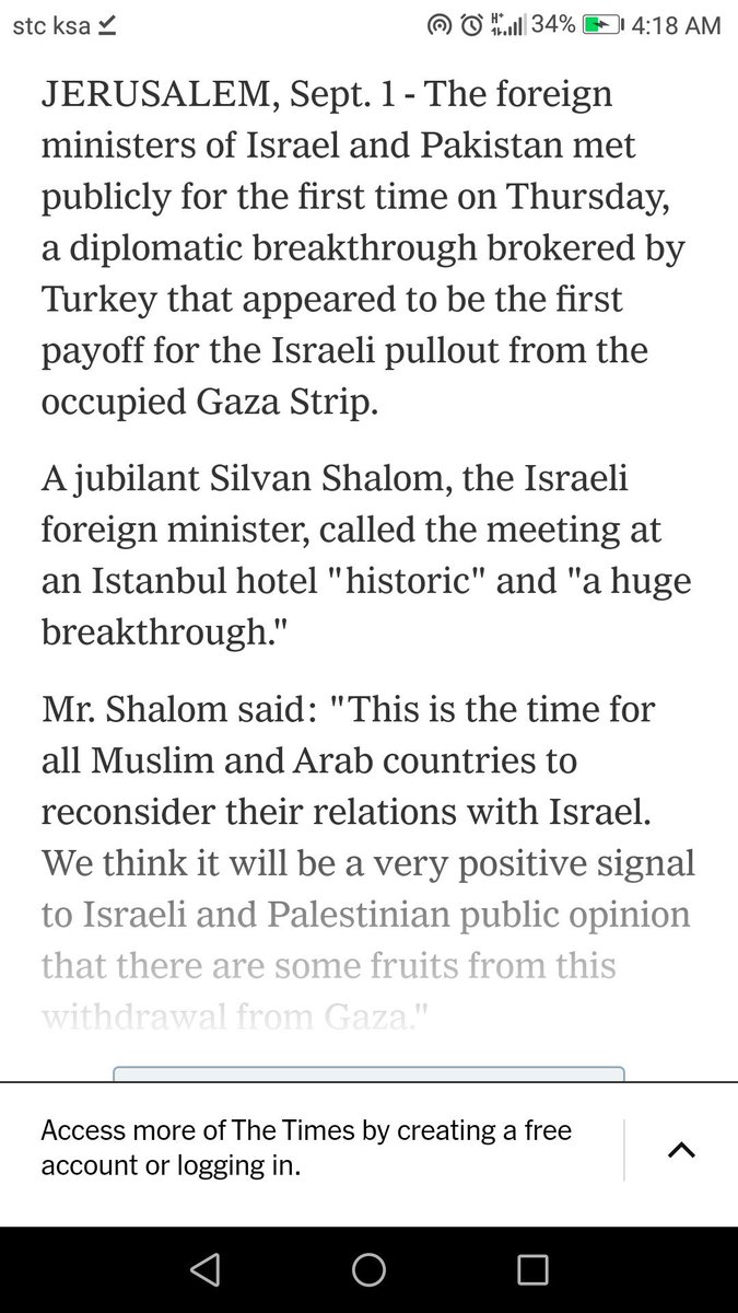 Şalom şöyle devam ediyordu: “Filistinlilerle çatışmaya çözüm bulmadan önce İsrail ve Arap ülkeleri arasında ilişkiler kurmanın, bu çatışmanın çözümüne daha fazla yardımcı olacağına ikna olmuştum. Halen de aynı düşünüyorum.