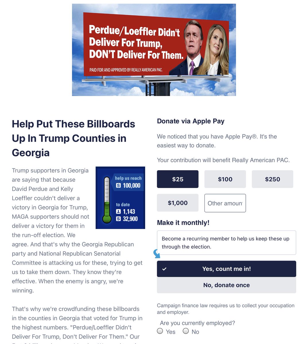 Really American is so all in on fundraising for Georgia they’ve been created a *2nd* fundraiser just to put up billboards.