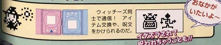 In 1998 a new Virtual Pet was made by Bandai/WiZ known as "Magical Witches: Four Elements Communication Book". With the appearance of a book, the user would take care of a witch using magical items.