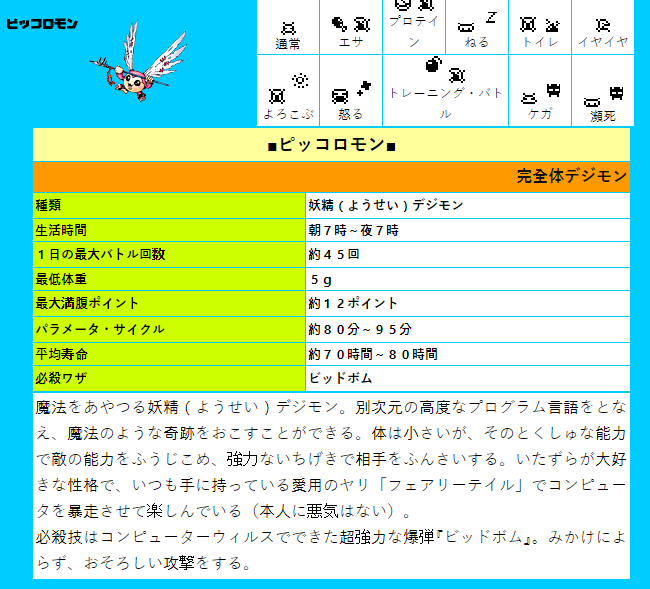 And although no witch appeared in the V-Pet, Piccolomon's profile mentioned that the "magic" used was a "advanced programming language of another dimension". With Nanimon being a clear reference to Tamagotchi, you could say the same to "this magic". But this isn't everything.