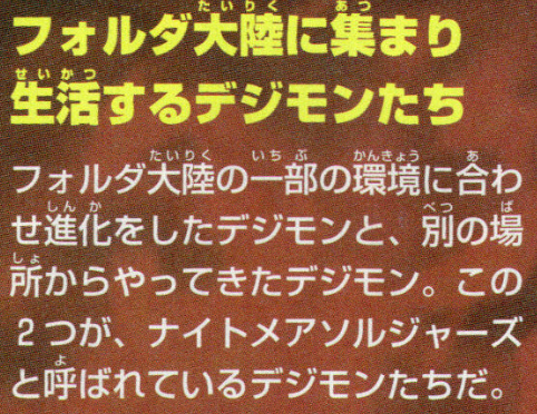 And this would become even clear with "Digimon Pendulum 3.0: Nightmare Soldiers". The Digimon known as Nightmare Soldiers could be those from certain environments of the Folder Continent... or from "another place".