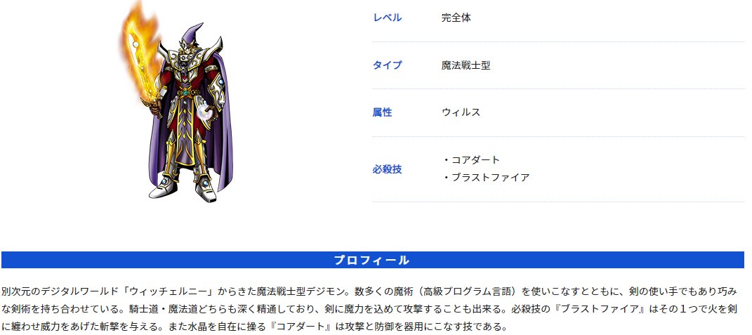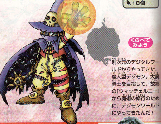 As such Witchelny was never really mentioned in the anime, with only a few anime profiles mentioning that Wizarmon was from that place. However, the wish to work with Witchelny would be manifested in other material also made by Kakudou.