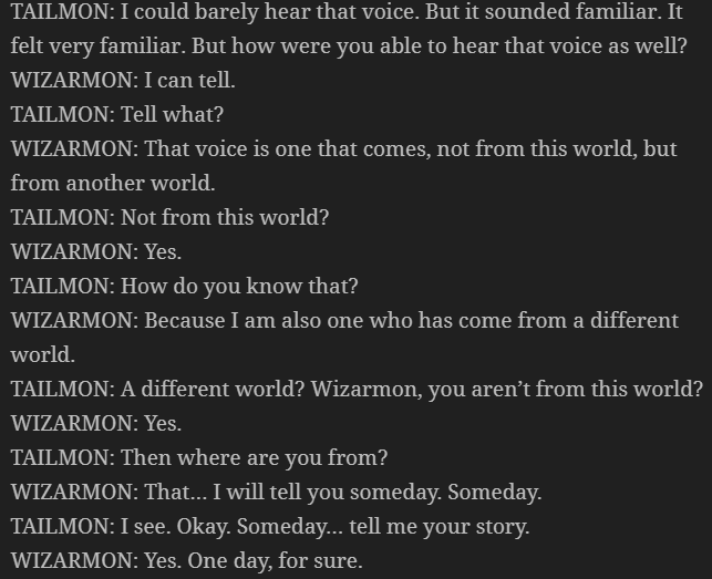 And also, it's said that Wizarmon traveled across many different worlds in the past, and when Vamdemon was trying to open the Door to the Human World, he already felt that this was his last journey.