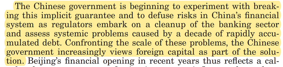 This is another under-reported perspective. There's some evidence of Beijing shifting on this implicit guarantee - Baoshang Bank, and recent bond defaults point to this. But let's see how this plays out.