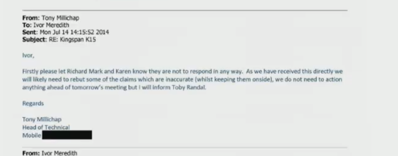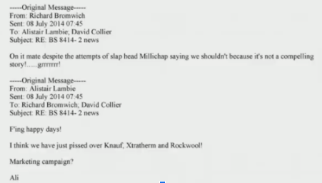 Kingspan were miffed about this - they wanted it to be deemed a pass even though the rules had changed. Millichap wrote internally that he planned to "sow some seeds to influence that result" and if that failed "stronger tactics will be employed"