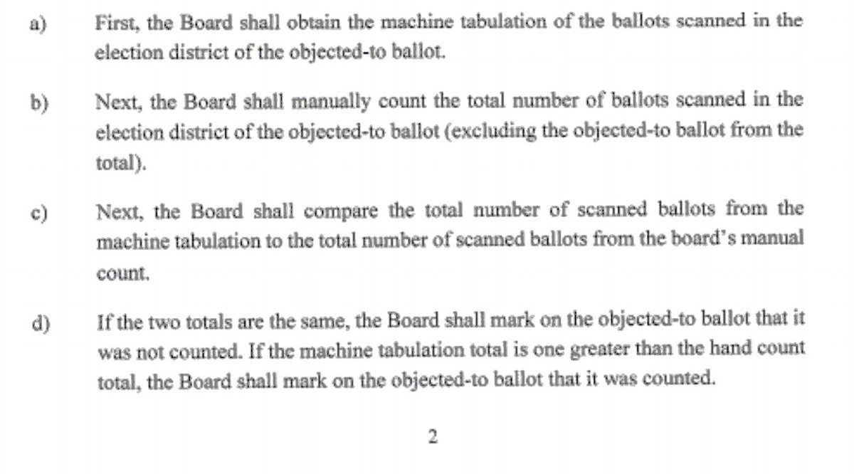 This comes courtesy of their order to show cause filing yesterday. The first step is trying to remove the "stickiness" of the situation by individually labelling each of the objected ballots as required by state law. Easier said than done we'll find 2/