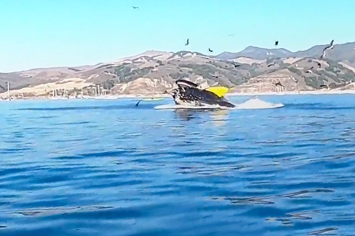Fue golpeado y levantado lateralmente, un buen susto sin duda... eso sí, la mujer relata en los medios que al llegar a la playa tenía un gran número de peces dentro de su ropa 😅 Se salvaron de ser engullidos por la ballena, ¿por ella?...
