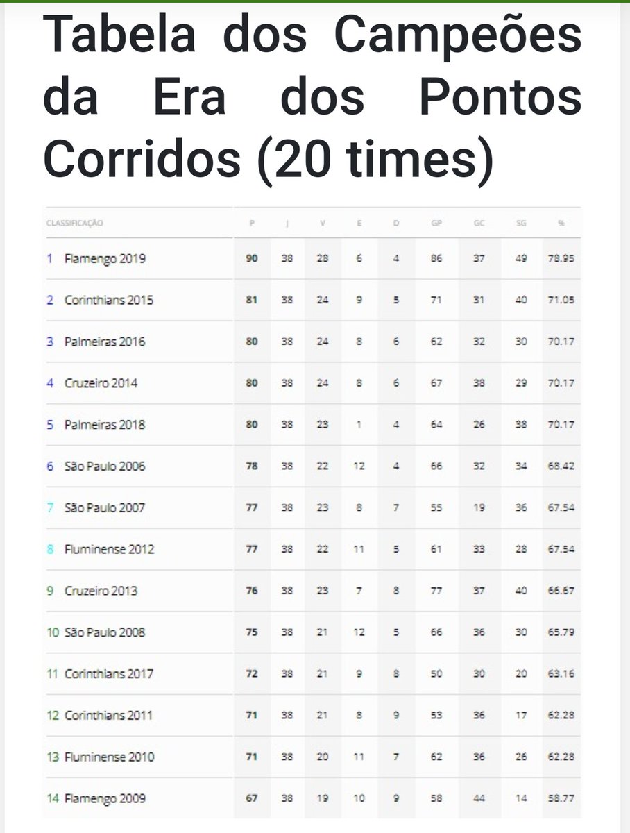 Com exceção dos títulos do Flamengo, conquistados em 2009 e 2019, com duas campanhas atípicas, o campeão do Brasileirão ficou com 21-24 vitórias e uma média de 77 pontos (76,78). Hoje o Flamengo tem 39 pontos e 11 vitórias em 22 jogos.